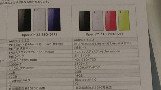 Sony Xperia Z1 Mini: svelate le caratteristiche tecniche da NTT Docomo
