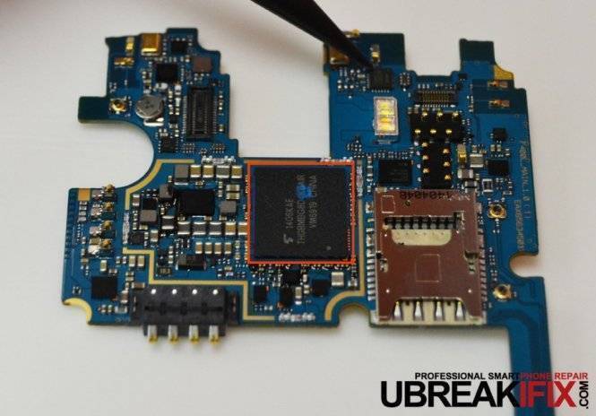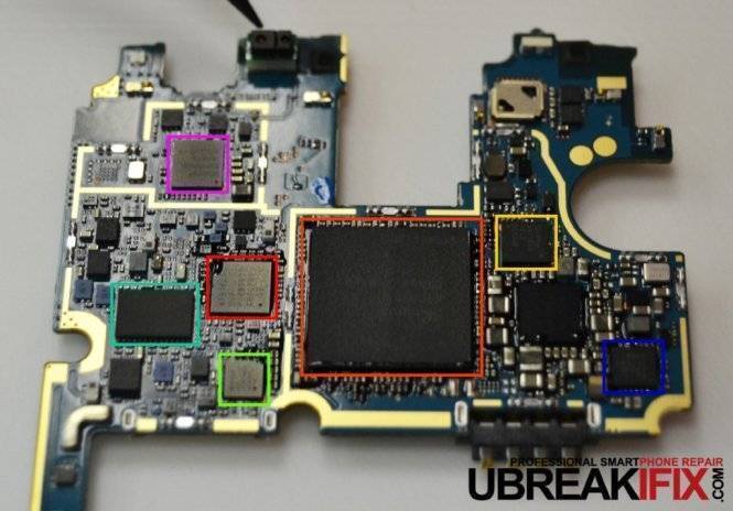 - (Orange) SK Hynix 2GB/3GB LPDDR3 RAM layered on the 2.5 GHz quad-core Snapdragon 801 processor.