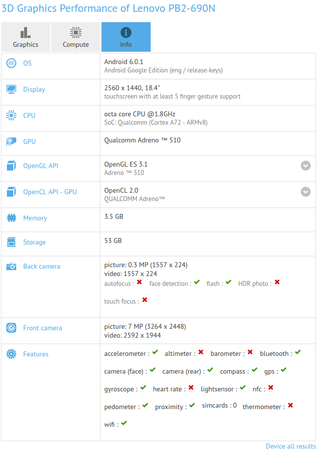 Lenovo il 9 Giugno darà vita a San Francisco alla conferenza per gli sviluppatori, evento in cui saranno senza dubbio presentati anche nuovi dispositivi dell’azienda cinese. A tal proposito nelle ultime ore, sempre su GFXBench, sono apparse le caratteristiche di un nuovo tablet che sarà realizzato proprio da Lenovo. Ciò che risalta immediatamente agli occhi è la misura del display che si aggira intorno ai 18,4 pollici.