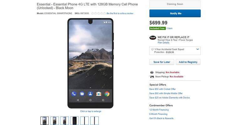 Oggi arriva una buona notizia per chi ha deciso di puntarci su: sul sito di e-commerce statunitense BestBuy, l’Essential Phone è finalmente apparso. Lo smartphone che, stando a quanto fu dichiarato durante la presentazione, “sarà composto da materiali capaci di durare nel tempo” appare nella colorazione Black Moon al prezzo di 699,99 dollari (prezzo che, stando alle ultime notizie che vi avevamo già riportato in questo articolo, dovrebbe però essere prerogativa per i clienti dell’operatore telefonico Sprint).