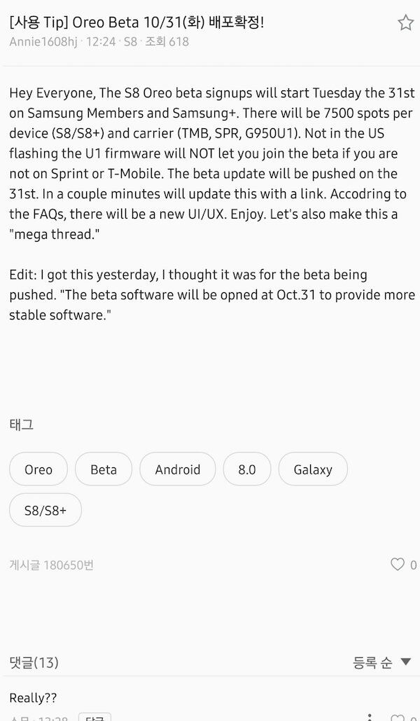Android 8 Oreo da fine mese sarà soggetto ad un programma di sperimentazione e di beta testing su Galaxy S8, almeno negli Stati Uniti, secondo quanto è stato segnalato. Si tratta ancora di indiscrezioni, ma sono molto calde ed è quasi assicurato questo periodo di prova, che dovrebbe essere lanciato negli USA a partire dal 31 ottobre. Se la notizia verrà confermata, chi possiede un Galaxy S8 o un Galaxy S8+ potrà iscriversi al programma di Samsung, per scaricare e provare Android 8 Oreo sullo smartphone. Naturalmente il tutto in anteprima.
