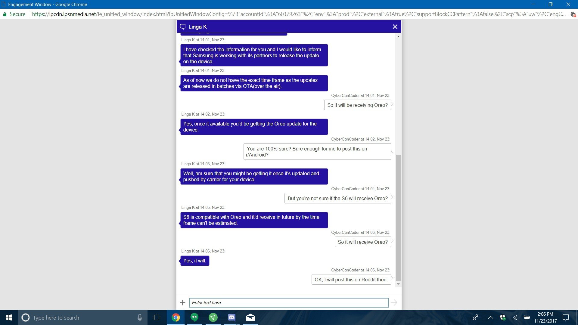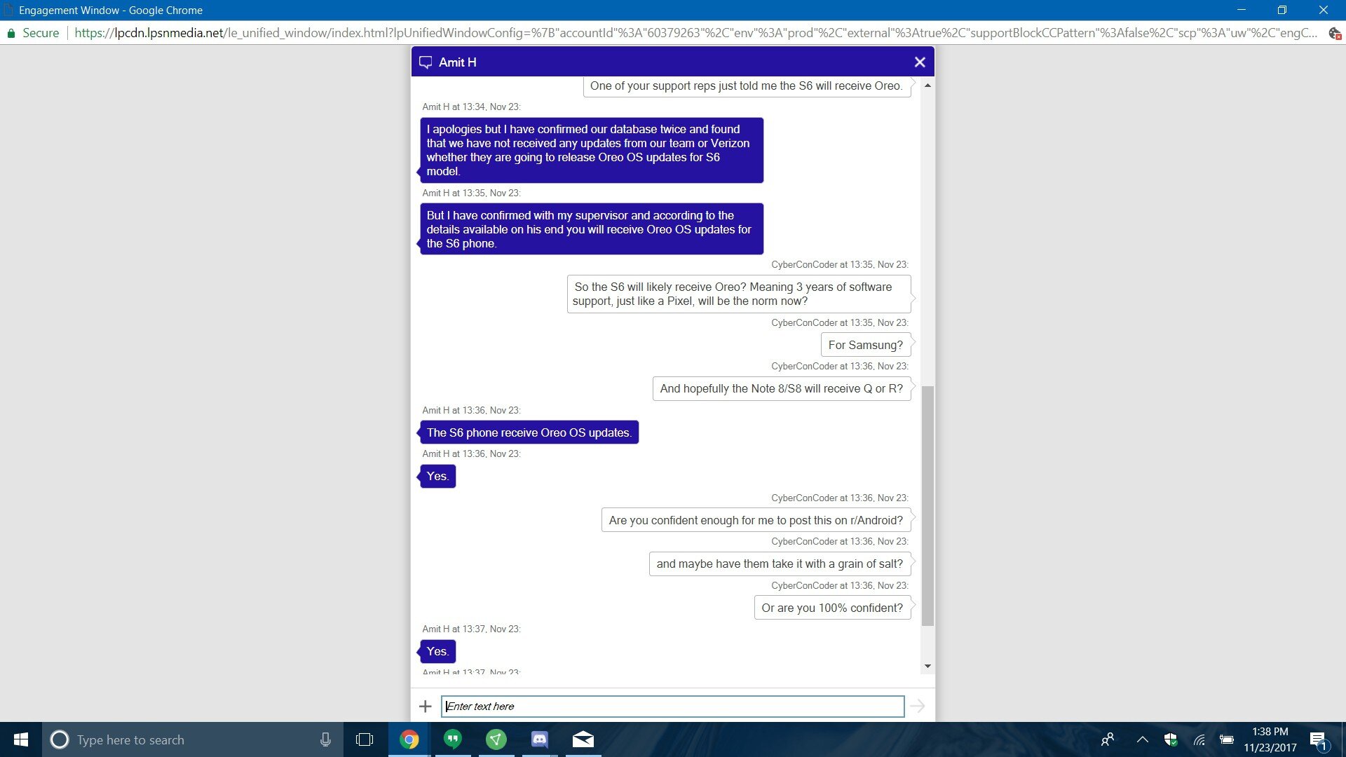 Ebbene, il tizio in questione ha contattato l’assistenza clienti Samsung per chiedere delucidazioni in merito e in quattro occasioni diverse, quindi con quattro operatori differenti, ha ricevuto sempre la stessa risposta: Samsung Galaxy S6 e S6 Edge riceveranno l’aggiornamento ad Android 8 Oreo. Inutile dire che affermazioni da parte del servizio clienti non possono essere prese per oro colato, ma è comunque un’indicazione importante che potrebbe essere confermata nei prossimi giorni.