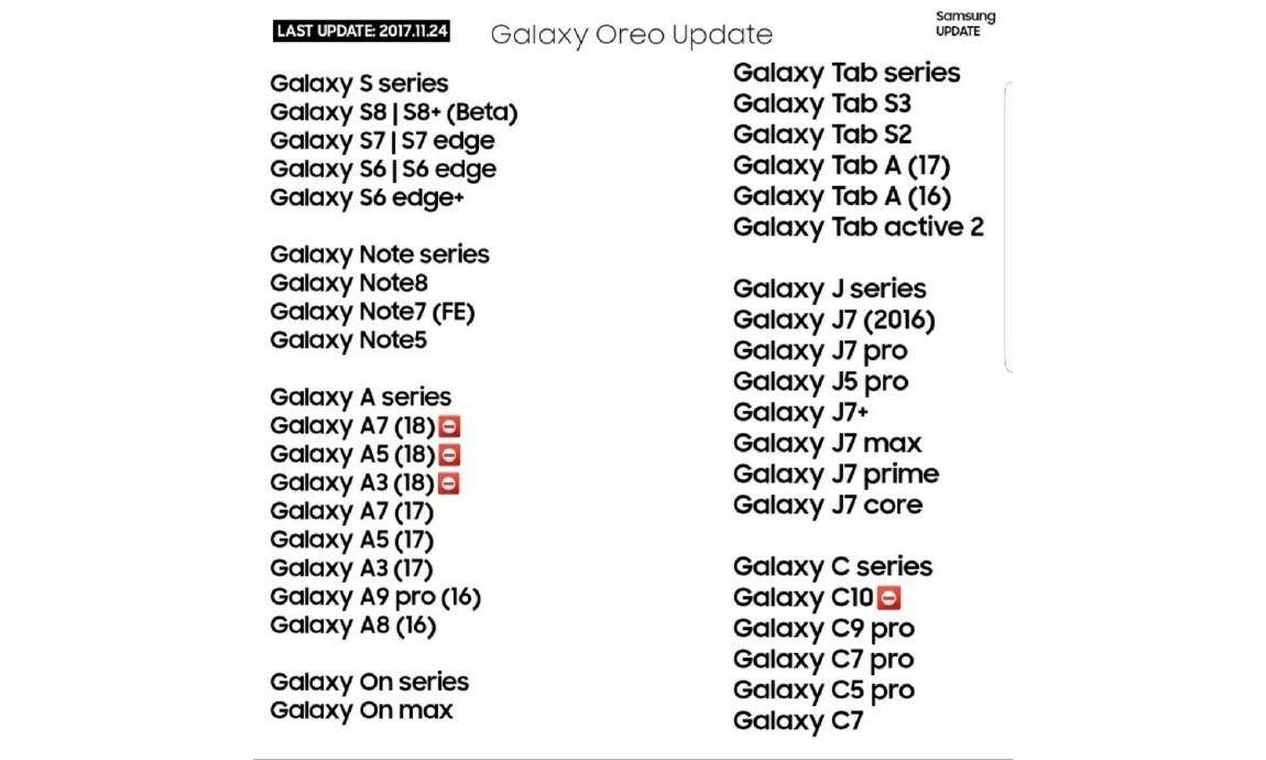 A ricevere l’aggiornamento ad Android Oreo saranno anche i mid-range della gamma Galaxy A 2017 e 2018 (questi ultimi debutteranno tra dicembre e gennaio con Nougat pre-installato). A completare l’elenco dei dispositivi che Samsung aggiornerà ad Oreo ci sono smartphone della gamma Galaxy On e Galaxy C (prodotti non venduti in Europa) oltre che diverse varianti del Galaxy J7 2017. Per quanto riguarda i tablet, invece, l’update arriverà sul recente Galaxy Tab S3, sul precedente S2 e sui Galaxy Tab A 2016 e 2017.