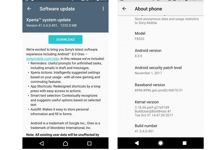 Sony Xperia XZ e Xperia XZs, in rollout l’aggiornamento ad Android 8 Oreo