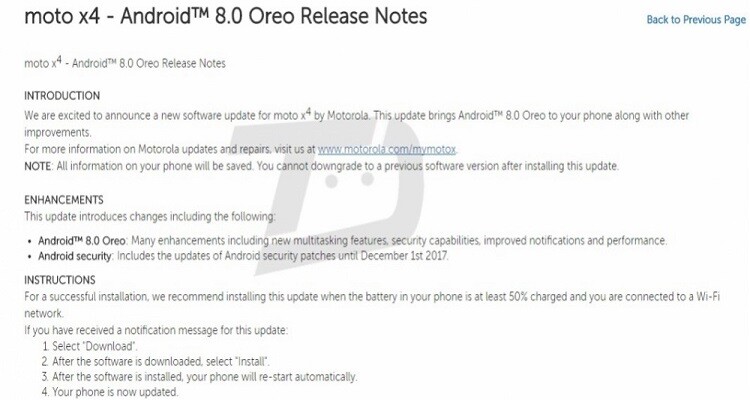 E’ un interessante leak quello condiviso oggi dal sito Techdroider.com e che di certo farà immenso piacere ai possessori di Motorola Moto X4. Lenovo avrebbe infatti in programma il rilascio di Android 8.0 Oreo (probabilmente anticipato da un breve periodo di beta-testing) sull’interessante device che si posiziona in una fascia medio-alta del mercato.