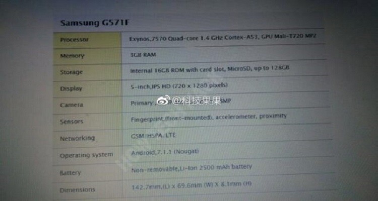 Samsung Galaxy J5 Prime (2017) dovrebbe così arrivare con un Exynos 7570 a bordo a quattro core (clock a 1.4 GHz), coadiuvato da una scheda grafica Mali-T720 e da 3 GB di memoria RAM. Non entusiasmante la dotazione di storage interno (16 GB, anche se espandibili fino a 128 GB tramite micro SD), così come non promette scintille il display IPS da 5 pollici con risoluzione in HD.