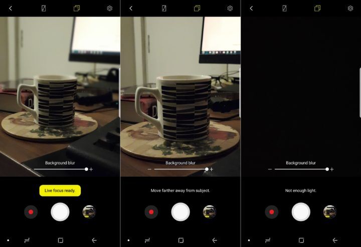 Dopo quest’ultimo aggiornamento, il testo “Live Focus pronto” è più visibile, grazie ad uno sfondo giallo opaco. Da notare, inoltre, come quando la fotocamera non si trova alla giusta distanza o non vi è sufficiente luce per effettuare uno scatto di buona qualità, l’app invia un messaggio all’utente.