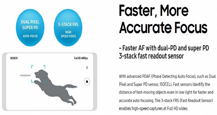Ebbene, entrambe le features potrebbero essere necessarie anche ad un miglioramento della qualità della registrazione video. In particolare sul sito ufficiale Samsung è comparsa per qualche ora una schermata in cui veniva annunciata la possibilità di registrare video in Full HD a 480 fps, il che significherebbe che con risoluzione minore, in HD, si arriverebbe addirittura a 960 fps. Il tutto grazie ad un autofocus più rapido e ad un modulo con sensori composto da 3 strati.
