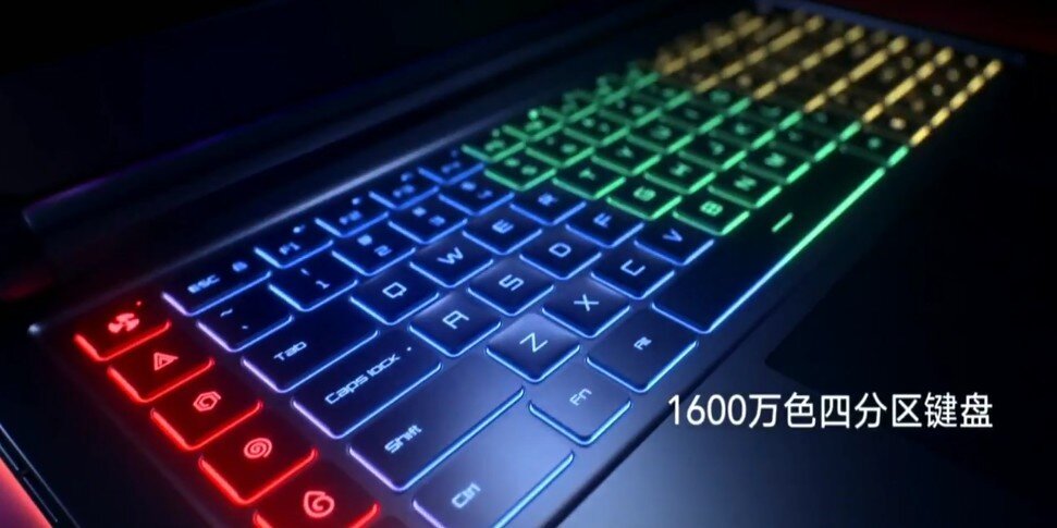 La scheda tecnica include anche una tastiera con retro-illuminazione RGB, come mostrato qui di seguito, e con tastierino numerico laterale ed una dotazione di porte che comprende 4 USB 3.0, 2 USB-C, HDMI e jack audio 3.5mm.