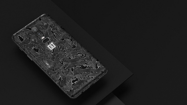 Nella descrizione del prodotto, che potrete trovare cliccando su questo link, viene fatto cenno ad una produzione definita “artigianale” e caratterizzata dall’utilizzo di una “innovativa fibra di carbonio”, composta da 36 strati, e alluminio. Sul retro è ben visibile un motivo ad onda che, però, passa decisamente in secondo piano nella visualizzazione “notturna” di questo particolare OnePlus 6.