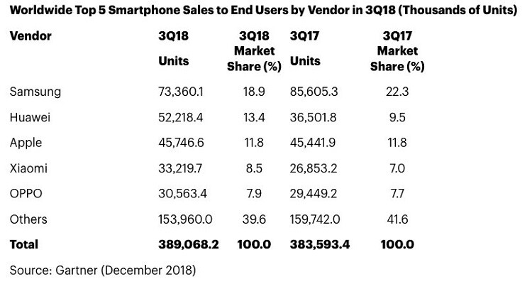 Si sta per chiudere un 2018 di certo non esaltante per il mercato degli smartphone. Oggi è arrivato il consueto report di Gartner relativamente al terzo trimestre dell’anno che, oltre a far segnare un timido segno “+”, è particolarmente interessante per alcuni dati specifici di alcuni produttori.