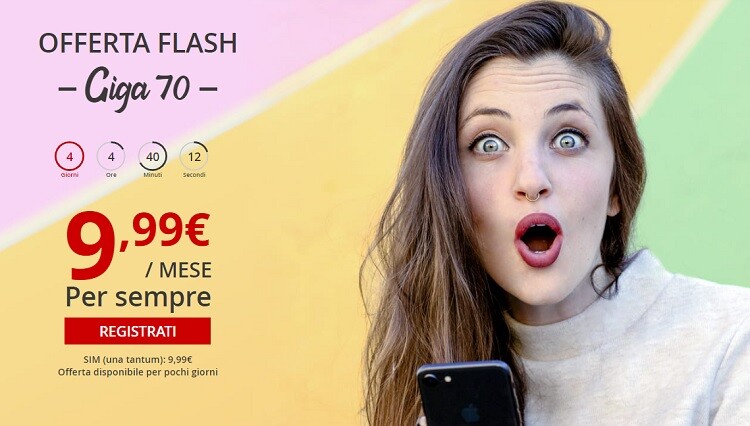 Andiamo subito al sodo: attivando l’Offerta Flash si potranno avere minuti illimitati di conversazione verso telefoni fissi e mobili italiani e stranieri (circa 60 paesi in totale, in Europa solo fissi), SMS illimitati in Italia e, udite udite, addirittura 70 GB di traffico dati da usufruire con velocità massima in 4G/4G+ (una volta passata questa soglia la navigazione continua a 0,90 € ogni 100 MB ma soltanto dopo il consenso dell’utente).
