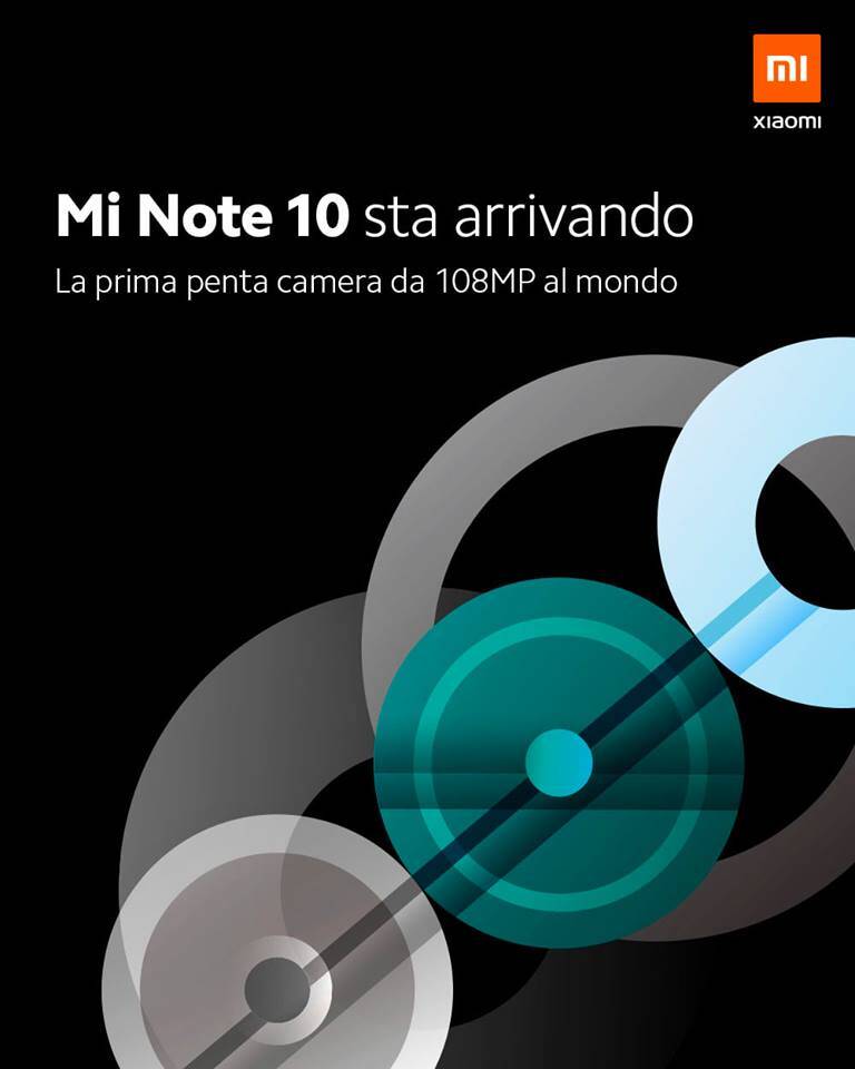 Con un post sulla pagina Facebook ufficiale, Xiaomi Italia ha confermato l’imminente debutto del nuovo Xiaomi Mi Note 10, smartphone che potrà contare su di una “penta camera da 108 MP” come chiarito dall’immagine diffusa dalla divisione italiana di Xiaomi.