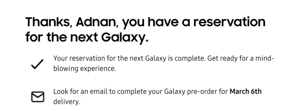 Sul sito del colosso coreano è già disponibile la pagina di registrazione per ricevere informazioni immediate riguardo ai pre-ordini degli ormai imminenti Samsung Galaxy S20. Alcuni utenti statunitensi hanno completato la procedura alla fine della quale è comparsa anche la data prevista per la consegna: il 6 marzo. Si tratta quindi di una prima conferma ufficiale anche se c’è da sottolineare che non tutti gli utenti hanno visualizzato quest’informazione e che, per il momento, sembrano coinvolte solo le registrazioni effettuate negli USA.