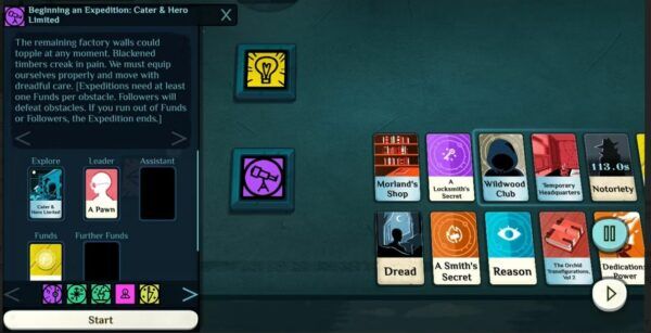 Cultist Simulator è uno dei migliori giochi di carte su Android , ma a differenza della maggior parte, si gioca in tempo reale. In Cultist Simulator, ti imbarcherai in un’avventura lovecraftiana, dove evocherai spiriti, incontrerai divinità e alla fine morirai. Anche se inizialmente potrebbe non sembrare un RTS, ti ritroverai presto intrappolato in una rete di trame e inganni che richiede molta pianificazione strategica.