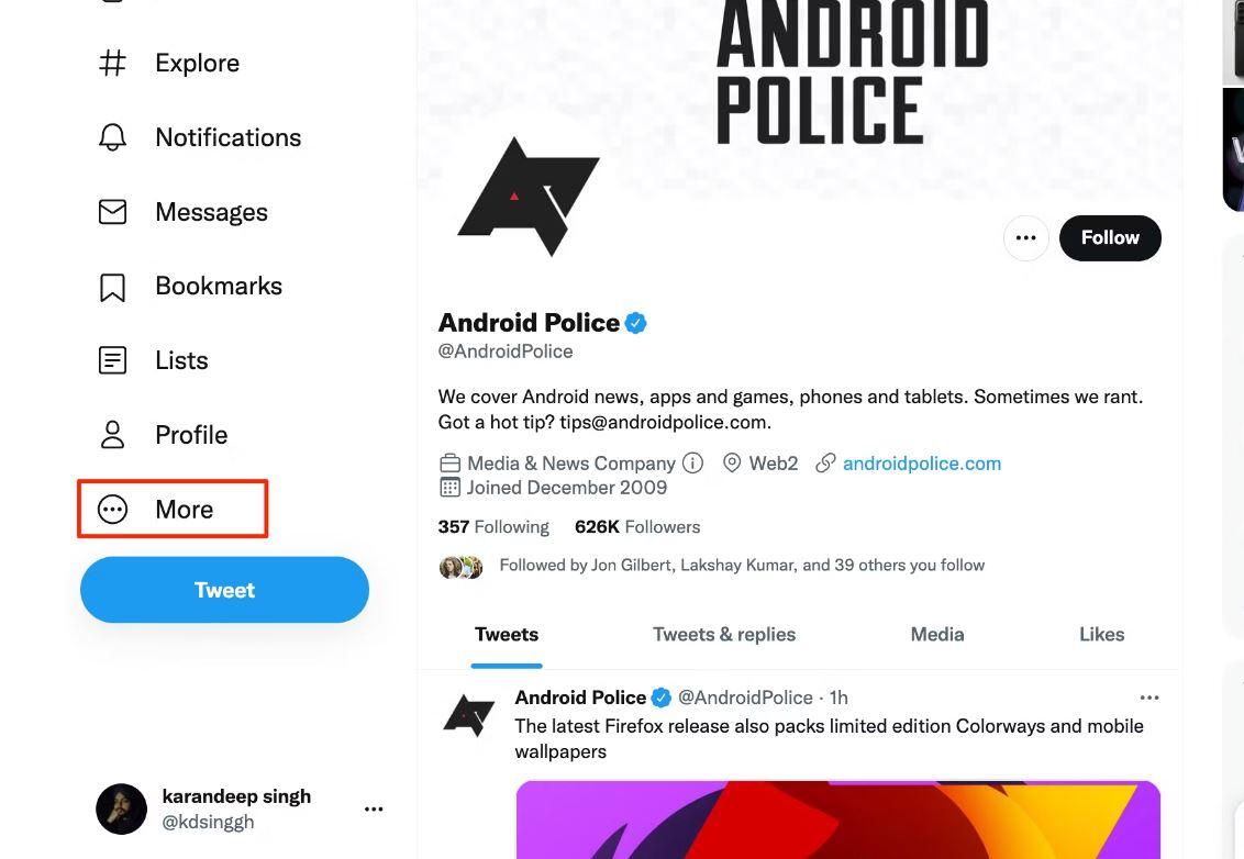 - Con twitter.com aperto in un browser web, fai clic su Altro nel menu a sinistra.